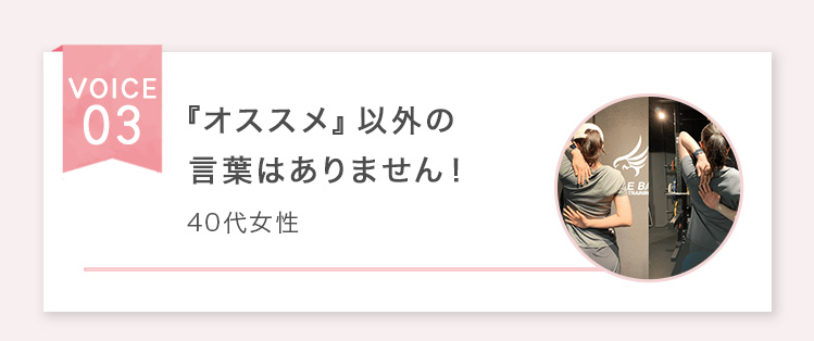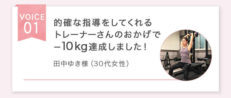 また、気さくで話しやすいので毎回楽しくトレーニングをすることができましたし目標に向けたサポートや励ましに支えられモチベーションを維持しながら通い続けられました。