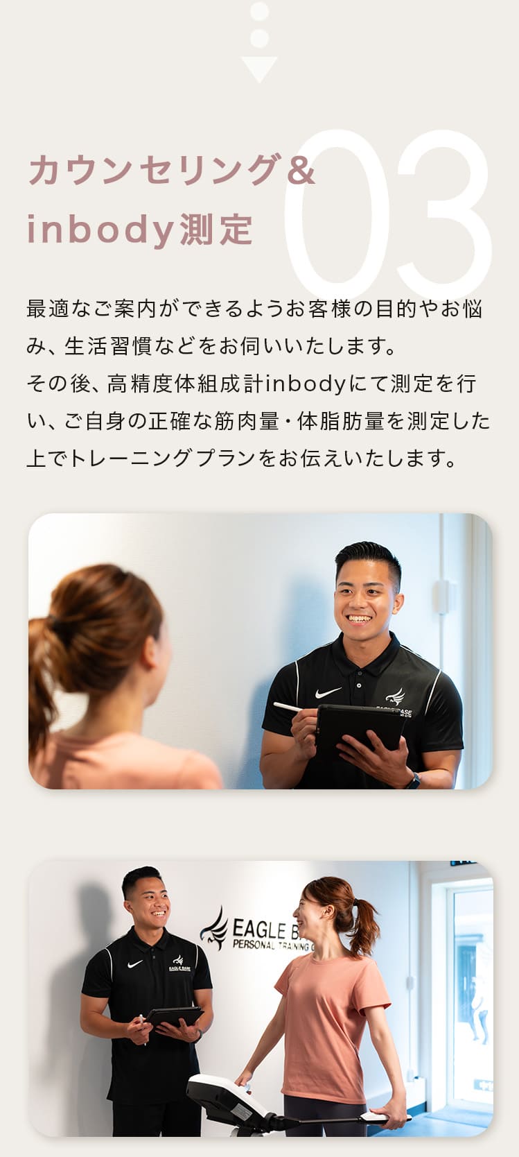 毎回のInBody測定測定結果を紙で頂けるので、各数値の推移も良く分かり、励みになります。